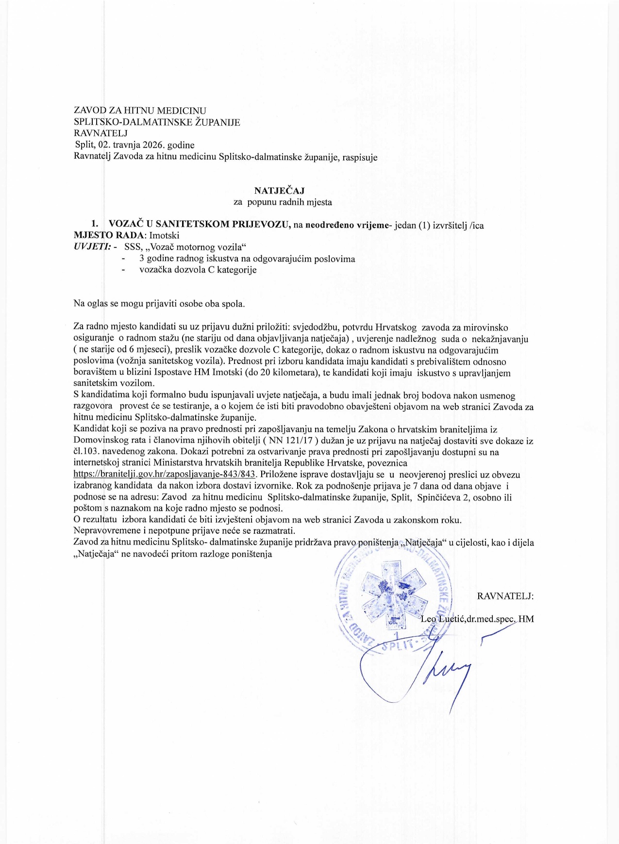 Natječaji za popunu radnih mjesta dana 02.04.2026.